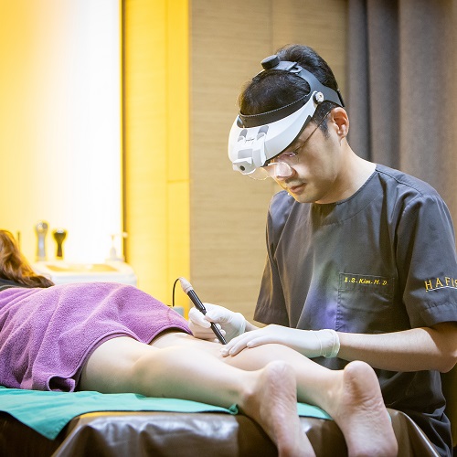 ハピスの代表的な施術である超音波ふくらはぎはリアルタイム映像モニタリングを通じてふくらはぎの筋肉を精巧に調整する高難度施術でソンヨンジェ院長が直接施術します。
